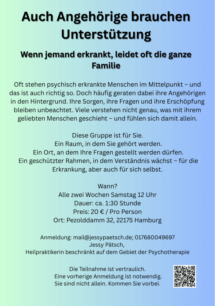 Termine nach Vereinbarung, auch Onlinesitzungen möglich.